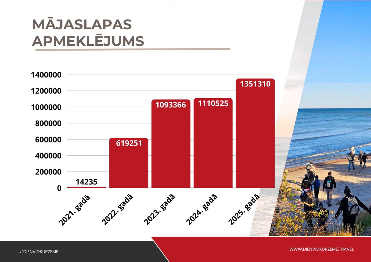 Populārākās sadaļas – “Mājas kafejnīcu dienas”, “IzPēdo Dienvidkurzemi”, “Naktsmītnes” un “Pārgājieni dabā” – liecina par pieprasījumu pēc strukturētas, vizuāli pievilcīgas un uzticamas informācijas.